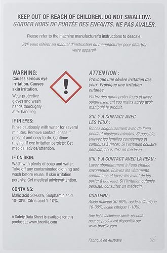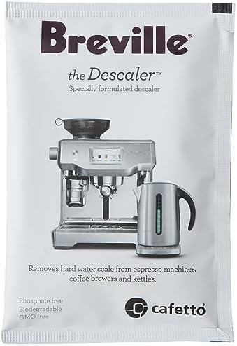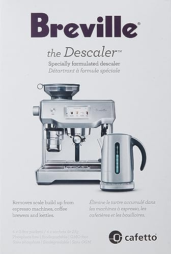 Breville specially formulated descaler removes scale build up from espresso machines, coffee brewers, ta makers and kettles. Pack includes 4 packets (4 uses). Phosphate free, biodegradable and GMO free. Can be used with all Breville espresso machines, coffee machines, kettles and tea makers.